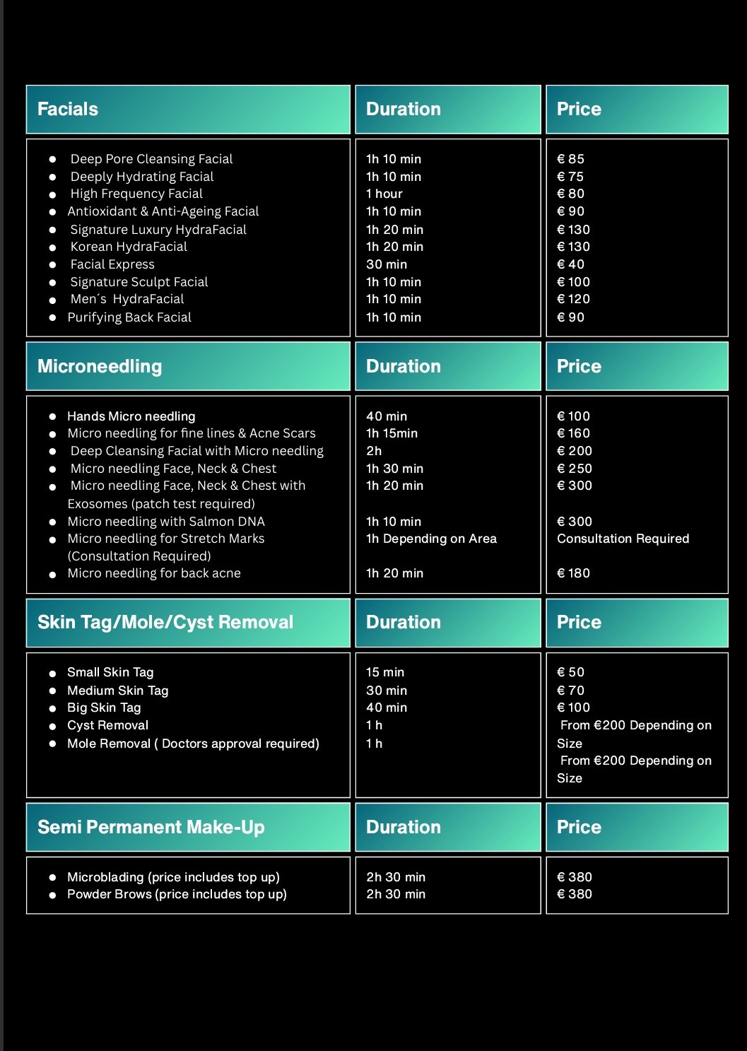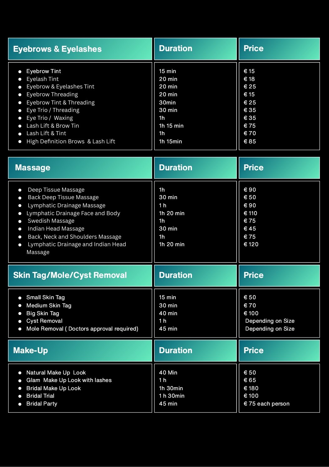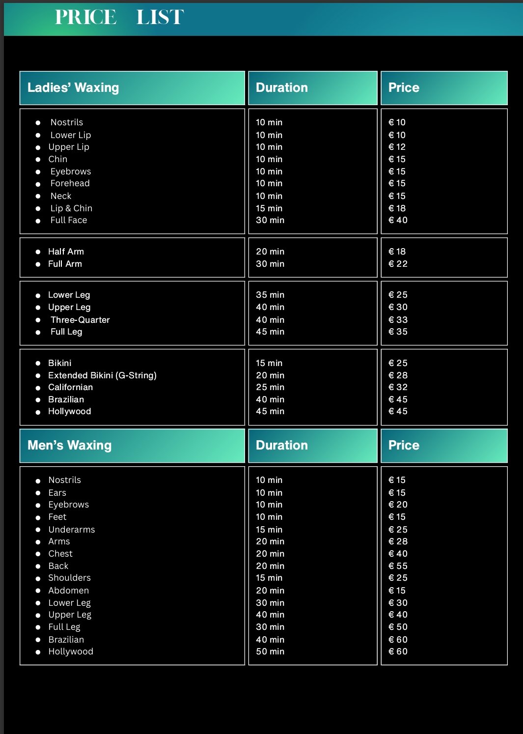 Our prices reflect the artistry, advanced training, and dedicated consultation time that go into creating a services that’s perfectly suited just for you.